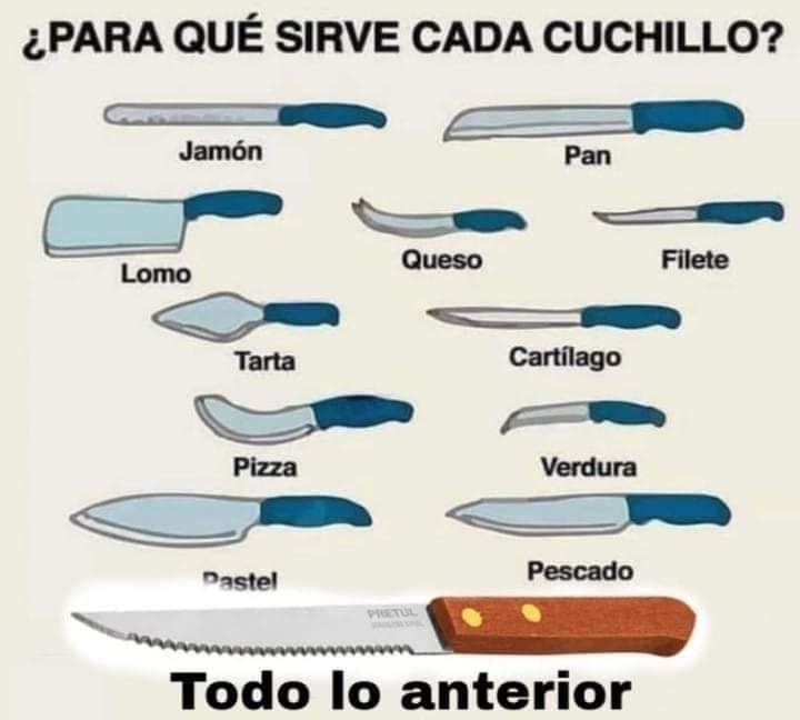 Los cuchillos de cocina, como los cazos y las sartenes, son muchos y variados